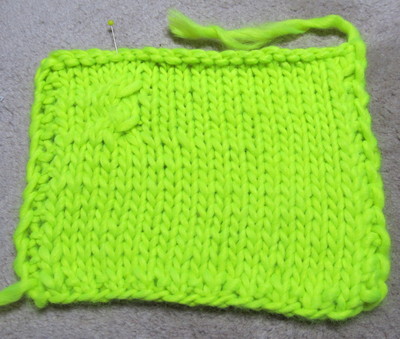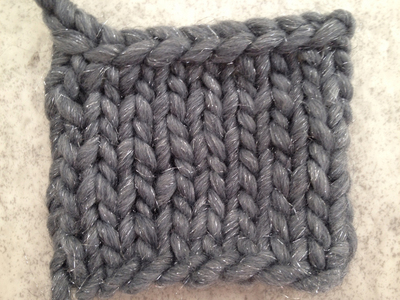 En tehnyt mallitilkkua ihan suosituspuikoilla, koska en löytänyt puikkovarastoistani niin isoja puikkoja. Pääsin löytämilläni puikoilla kuitenkin suunnilleen suositustiheyteen. Paksuilla puikoilla neulominen on hieman kömpelöä, ainakin jos siihen ei ole tottunut, joten valmista ei tule ihan niin nopeasti kuin voisi kuvitella. Kimallesäikeitä on langan seassa useita ja ne ovat hyvin ohuita. Valmista neulepintaa voisikin luonnehtia säkenöiväksi, sillä kimalle pilkistää langan seasta ja säikeiden päitä putkahtelee ulos neulepinnasta. Kimallesäikeitä tunkee ulos myös itse langasta, joten pientä varisemista tapahtui neuloessa.