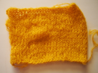 Koska testattava lanka oli nimenomaan kimalleversiota, on sitä ehkä vähän aiheetonta verrata vanhaan Teddyyn, mutta eipä ole uuttakaan Teddyä käsillä. Vanha Teddy on lankana pullea ja pörheä, kun taas uusi Teddy on laihaa ja narumaista. Selkeä ero on siinä, että vanhan Teddyn karvat ovat villaisia ja uuden muovisia. Kun uusi Teddy näyttääkin laihemmalta, niin ei ollut yllätys, että 7 millin puikoilla neulottuna se myös jäi ohjeellisesta tiheydestä useamman silmukan päähän. Toisaalta, kun karvat eivät ole enää villaa, niin ehkä tästä langasta neulotut lapaset ja muut kuluvat neuleet pysyvät siisteinä pidempään. Kimaltava Teddy on oikeastaan ulkoasullisesti lähempänä Novitan syksyn 2010 lankaa Softyä, joka sekin näytti ihan Teddyltä, joskin hieman ohuemmalta. Softyn koostumus oli kuitenkin Teddyä muovisempi (40 % polyamidia, 39 % villaa, 21 % akryyliä).